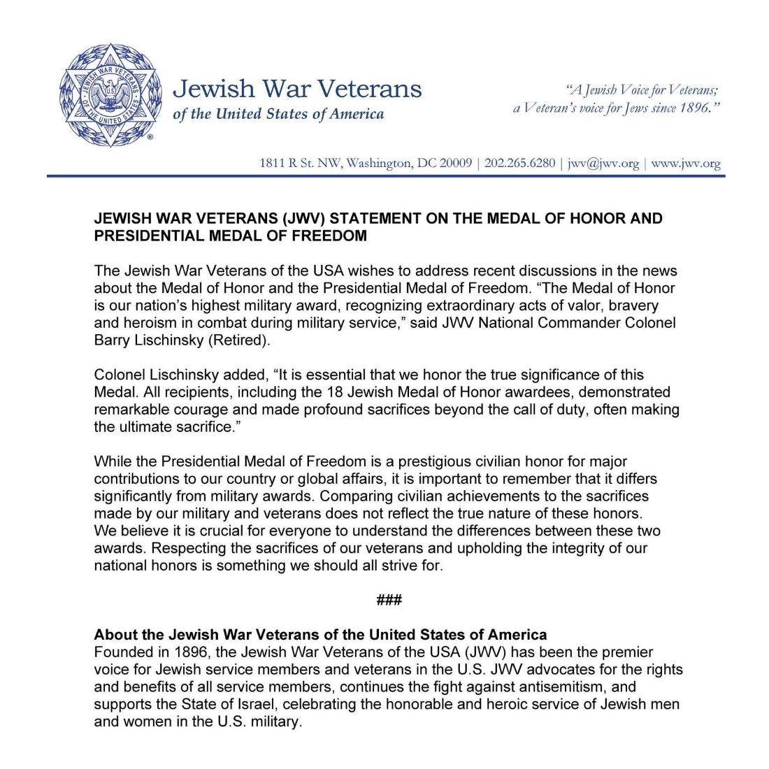 Jewish War Veterans of the USA posts all of it's Press Releases at: jwv.org/media/press-releases.