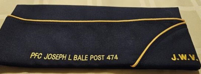 The JWV hat comes with a JWV patch on the left-front and the letters "J.W.V." on the right-front. Embroidery you need (Post name and number) will either be done by Keystone for an additional price, or you can have it done locally.